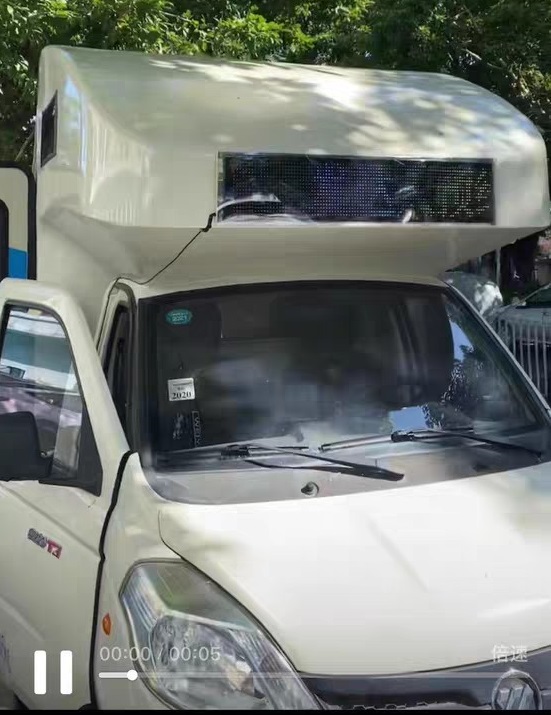 缺钱急出售福田移动美发车 ,2018年4月注册的 ,跑了6千多公里,保险五月份刚买的,强制报废期2033年4月3号,1.2排量,手动挡,非常省油,LED屏可随时改字,带三个水箱 两个100安电池 一个大逆变器,边框都有彩灯
