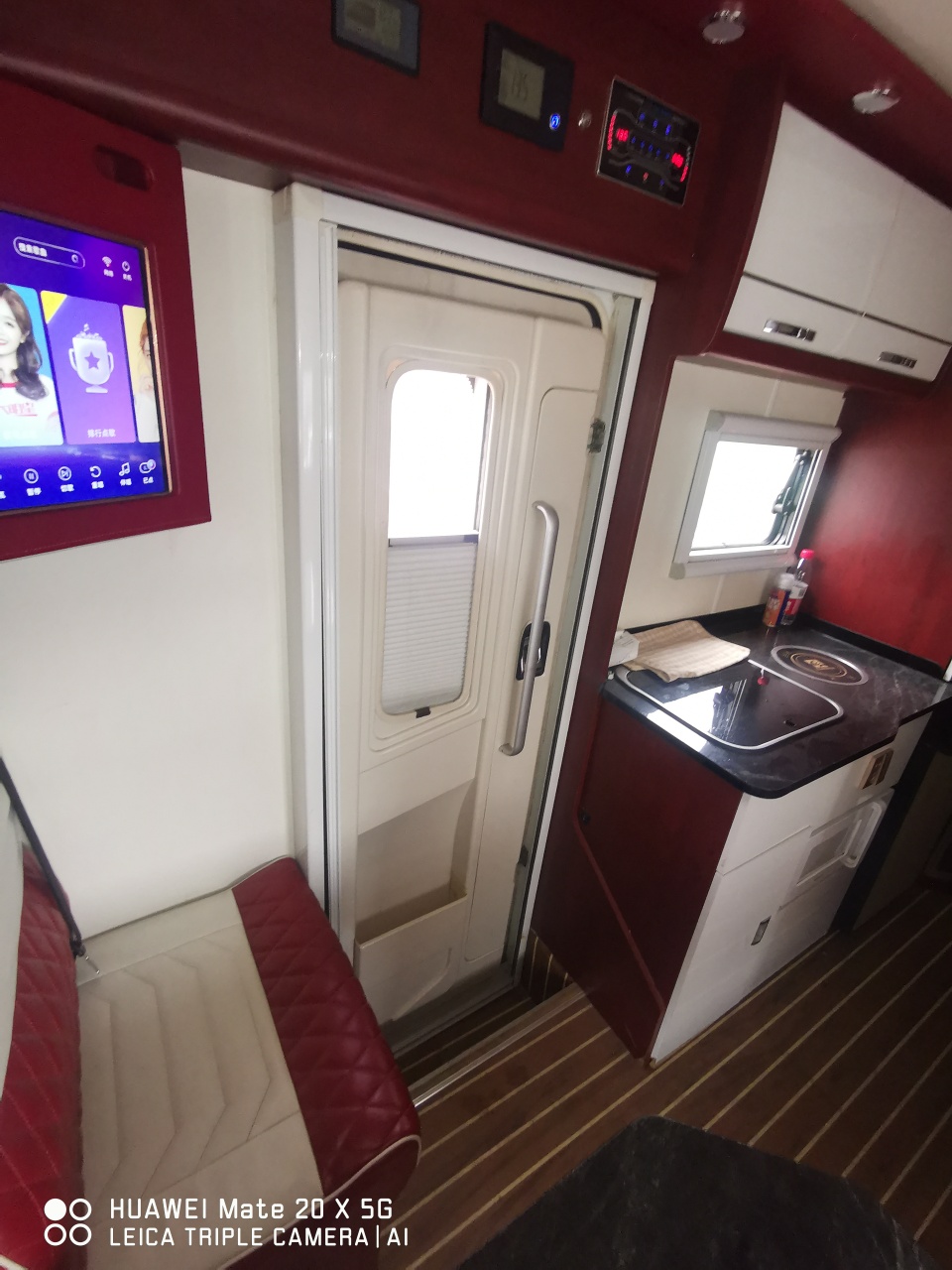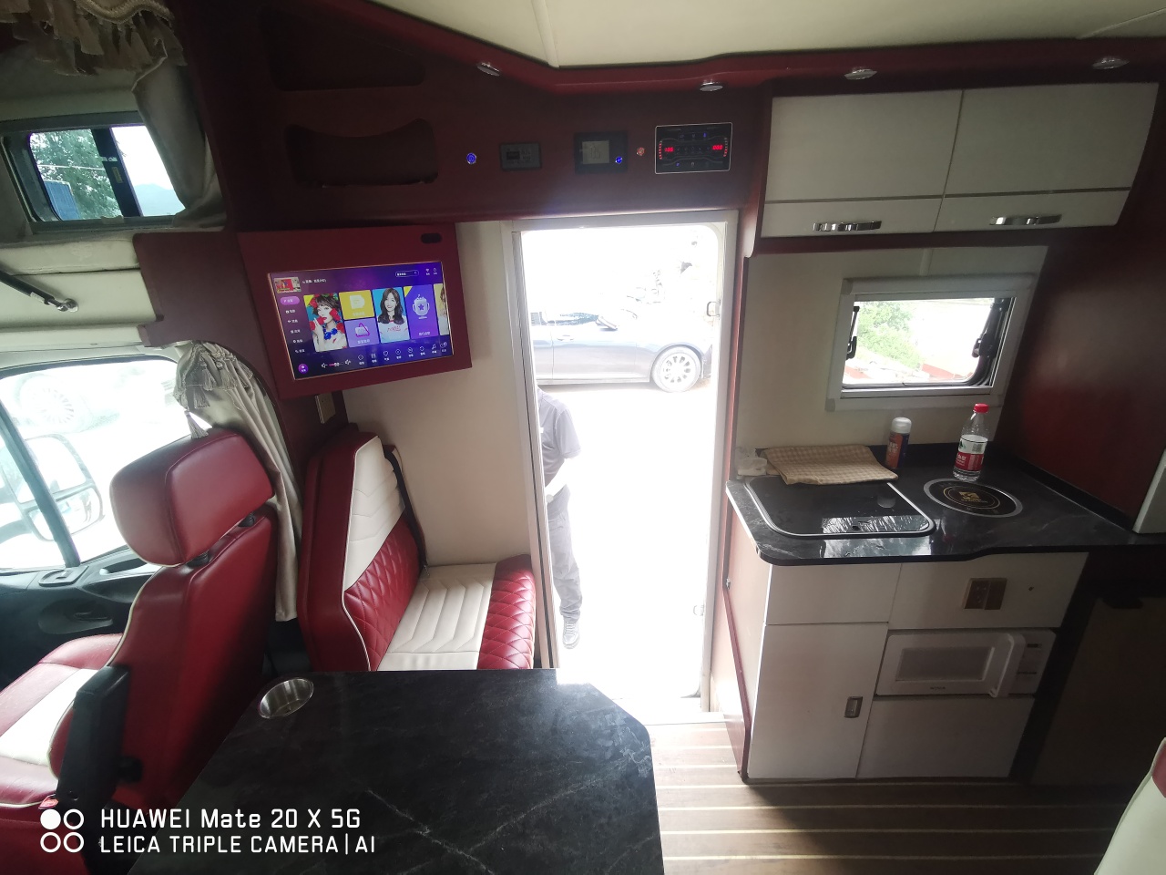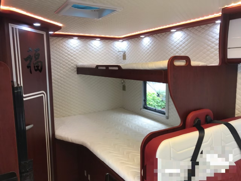功能配置:后驱后双轮,原厂超高配,荷载6人,副驾旋转气垫座椅,六座六卧,3D床垫,电动踏步,格力家用变频空调,宁静无声,进口冰箱,抽拉排污马桶,洗手盆,电磁炉,全新户外柴油灶,音响+KTV,置物桌板,双行车发电机,燃油暖风热水一体机,多功能方向盘,32寸额头液晶大电视,行车流媒体,倒车影像,倒车雷达,定速巡航,胎压监测,后驱后双胎,2.5米全展遮阳棚。