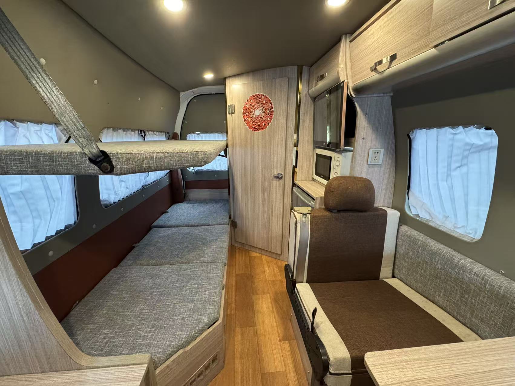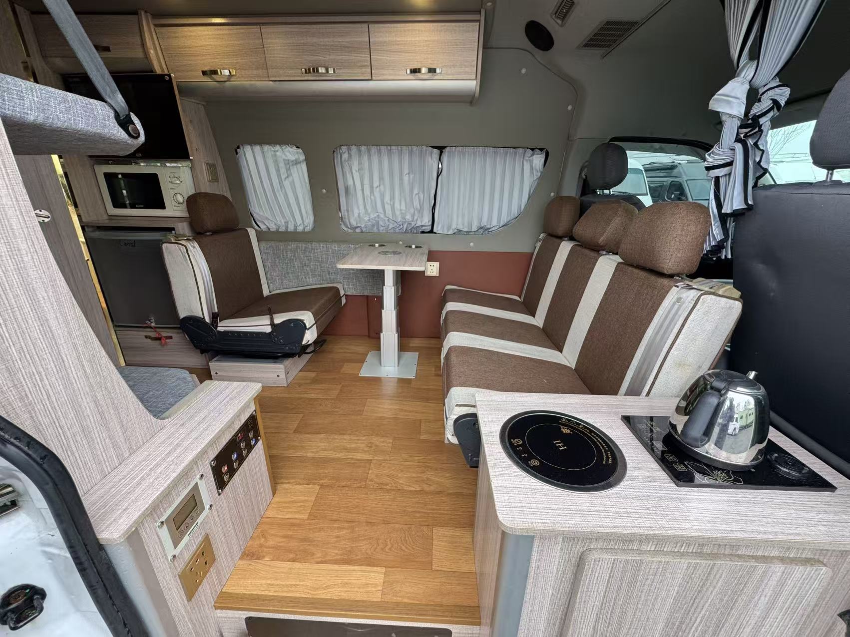【厨卫配置】12V58升直流冰箱,电磁炉,热水壶,格兰仕微波炉,热水系统,翻盖式洗漱池,独立淋浴花洒,化妆镜,双向换气扇。
