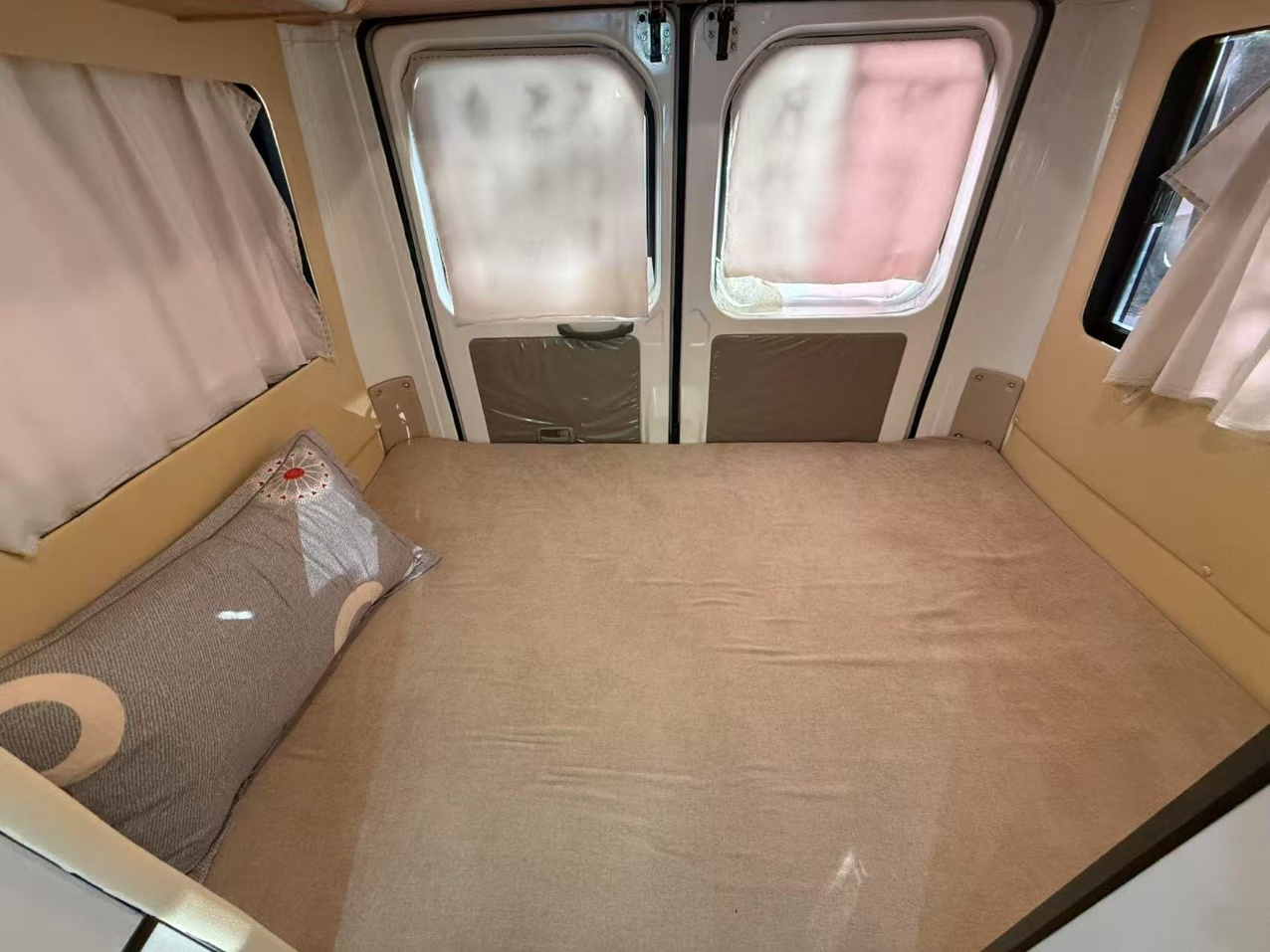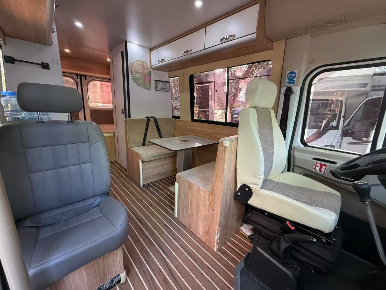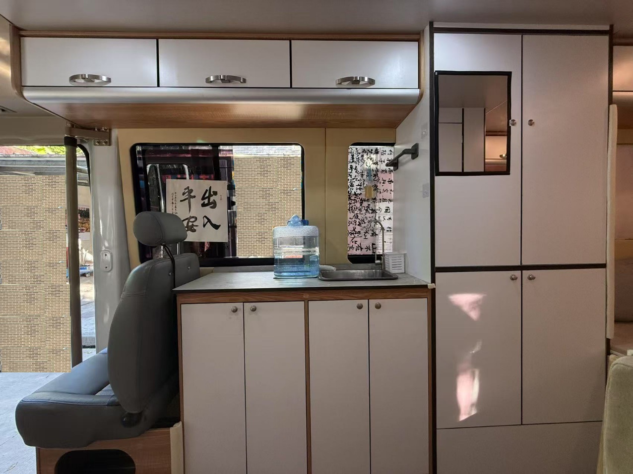 功能配置:四人对卡座(桌子可升降调节高度,变沙发床1700*900mm)、超大观景窗、不锈钢洗菜池,电动门、马桶等