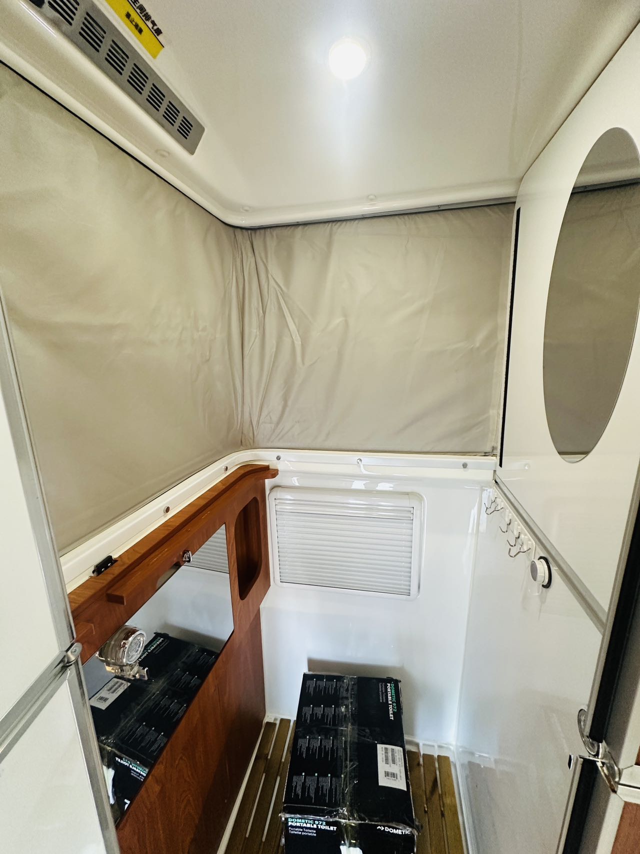 【厨卫配置】折叠式独立卫生间+燃油暖风热水+冰箱+折叠水盆+便携马桶+换气扇
