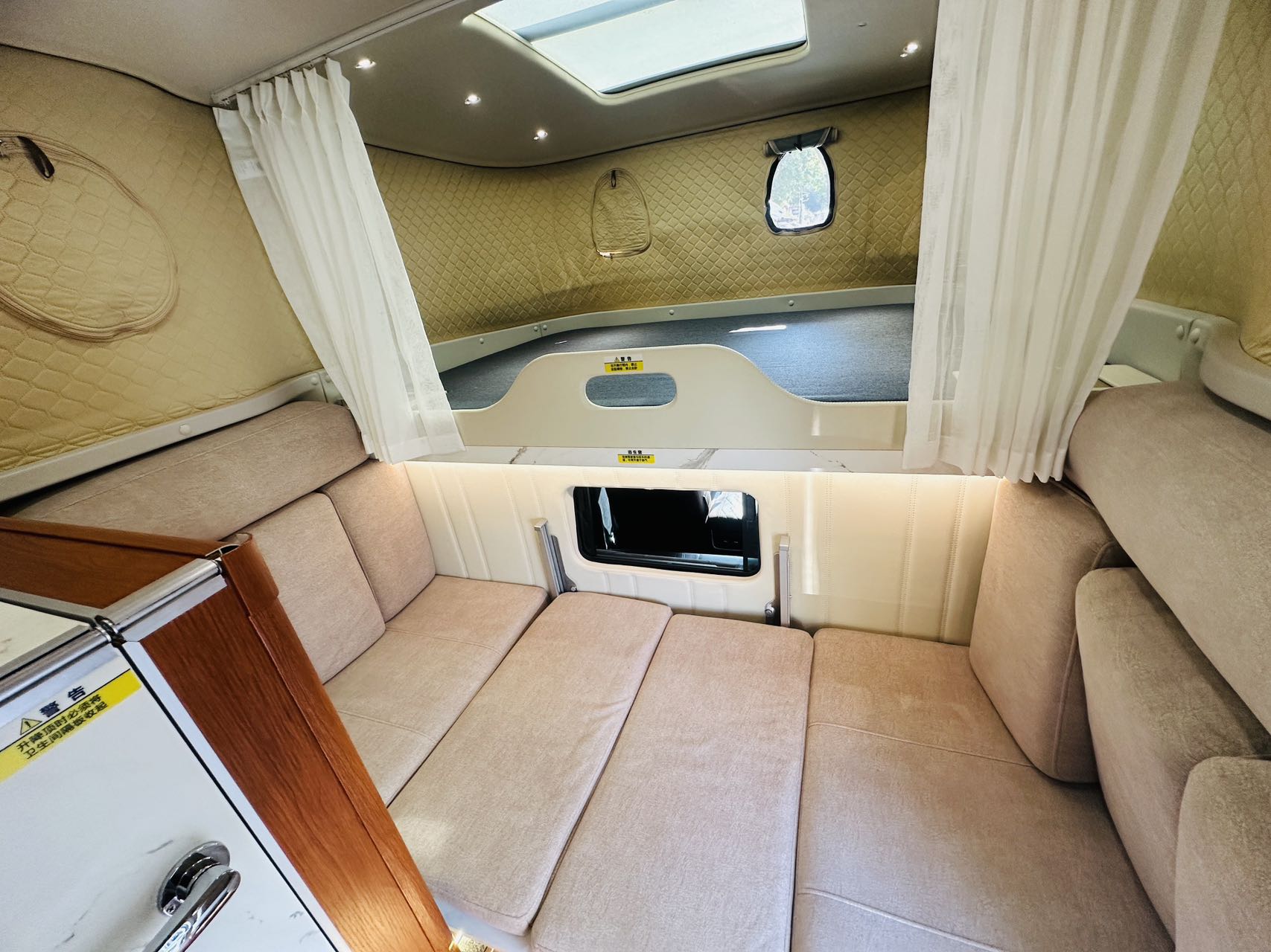 【其他设施】全铝冲压车身做到轻量化,+24v直流空调+电动升降桌+额头床大天窗