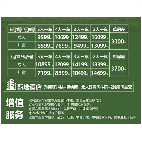 甄选酒店7晚携程4钻+喀纳斯、禾木双景区住宿+2晚景区露营